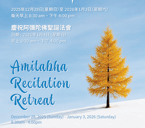 法會 2025 華嚴法會 May 27, 2025May 27, 2025 2025年6月1日 – 6月21日 6月1日(星期天) 早上 8:00 緬懷宣化上人涅槃三十週年法會 / 傳供 下午 1:00~4:00 誦華嚴經 6月2日 (星期一)~6月21日 (星期六) 每天第一支香唱華嚴字母 早上 8:00~10:00 下午 1:00~4:00 Share