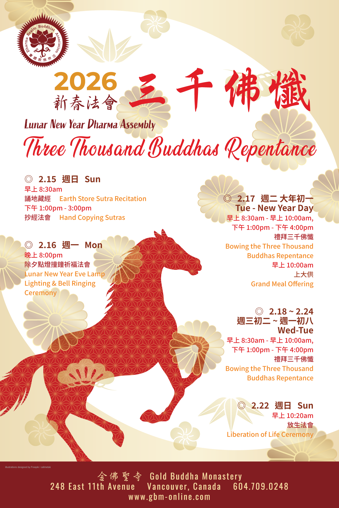 1:00pm Bowing the Three Thousand Buddhas Repentance